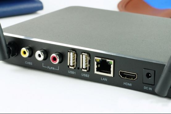 盒子的接口還是比較豐富的,背面左至右分別為:WIFI天線、光纖接口、AV接口、HDMI2.0接口、LAN接口、reset按鍵孔、5V/2A電源接口比較齊全。