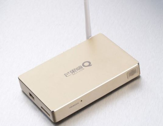 海美迪盒子機(jī)身采用土豪金的配色,四角采用圓角設(shè)計(jì),四周加以不銹鋼邊框點(diǎn)綴。盒子的正上方印有芒果嗨Q的灰白色印制LOGO。整體造型大氣之余也滿滿土豪的氣息。