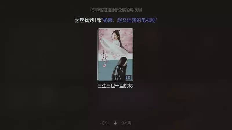 以搜索電影為例,以往我們需要說出電影名字才能搜索,而小米電視4A有更加智能方式,當你不知道想看什么,只要說出明星、導演、主題、獎項等關鍵詞都能準確搜到。在實際體驗中,我想看前段時間火爆的電視劇《三生三世十里桃花》,對著遙控器說:“楊冪和趙又廷演的電視劇”,屏幕上很快就出現了《三生三世十里桃花》。甚至我更用八卦的方式,“楊冪和高園園老公演的電視劇”也能順利找到《三生三世十里桃花》。