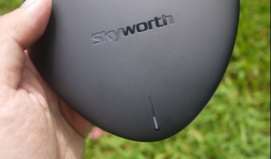 創維電視盒子的外觀,一直采用了比較豐富的設計元素,機身整體采用啞光黑色的設計,從上圖我們可以看到在側視視角條件下,機身上半部分和下半部分的交界處有一條銀色件線,比較的有特色。