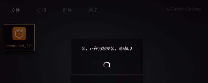 10、點擊安裝然后進入到應用的安裝中,這時候需要耐心的等待應用的安裝過程,不能將盒子關機或者是斷電,這會影響應用能否成功安裝。