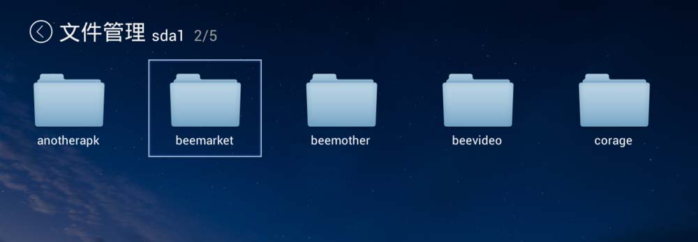 4、用遙控器方向鍵移動(dòng)焦點(diǎn)到文件管理,然后按下遙控器的確定鍵,并且等待進(jìn)入下一步的操作。