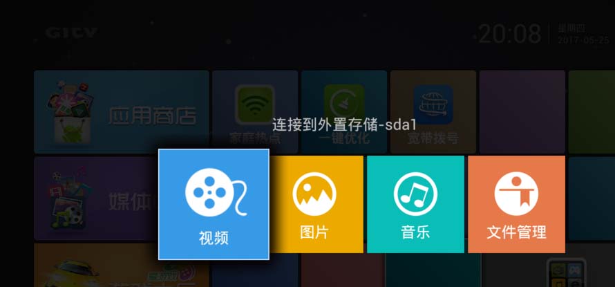 3、把事先已經(jīng)儲(chǔ)存好安裝文件的優(yōu)盤,插入到盒子后面的USB接口當(dāng)中然后等待盒子彈窗窗口。帶彈出頁面以后,進(jìn)入下一步的操作。