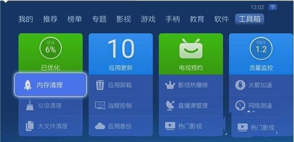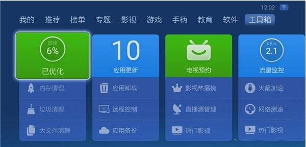 1、在盒子上下載并打開沙發管家,找到工具箱專區,選擇一鍵優化功能,可以快速關閉后臺無用進程,有效提升盒子運行速度。