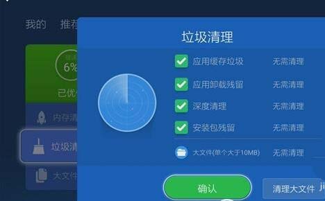 4、垃圾清理,很多安裝包殘留,應用緩存的垃圾,都會導致盒子運行卡頓,因此這個功能就是幫助我們清理這些無用垃圾的。