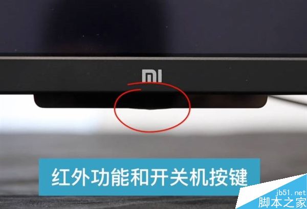 電視底部邊框的正中間是“MI”的LOGO,下緣有一個小的凸起是電源鍵,這也是機身唯一的一個實體按鍵,這也就注定了它對于遙控器有很強的依賴性。