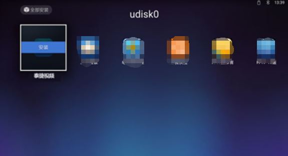 如果說系統沒有自動檢測到U盤,這時候也不要著急,請打開主界面的“應用”,點擊“多媒體播放”,找到你的U盤設備,點開之后,就能發現下載好的泰捷視頻安裝文件,點擊安裝即可。