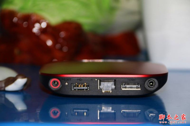天貓魔盒M17的外形與最早的天貓盒子一脈相承,比一代的盒子略薄,后寬前窄,典型的紅與黑的配色,頂面前臉為黑色的天貓LOGO造型,指示燈集成在貓鼻子上。