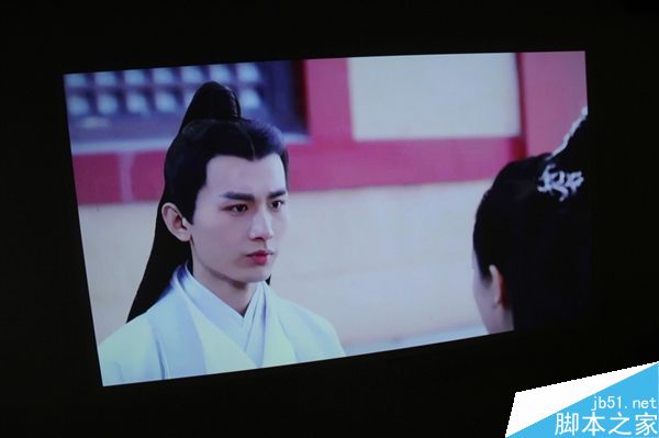 側(cè)著拍攝,所以畫面看著不是很正。投影是正常的16:9矩形(跟電視一樣)。