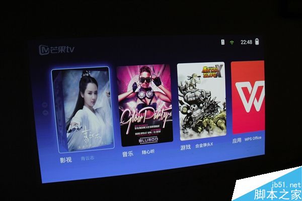它可以看作電視盒+投影儀+音響的綜合體,既可以連接手機(jī)、Pad聽(tīng)歌,也能聯(lián)網(wǎng)在墻壁、幕布上投影看網(wǎng)絡(luò)電視(芒果TV系統(tǒng)平臺(tái))。