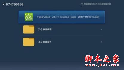 2、用遙控器點(diǎn)開后續(xù)頁面,找到泰捷視頻安裝文件,按遙控器確認(rèn)鍵進(jìn)行安裝: