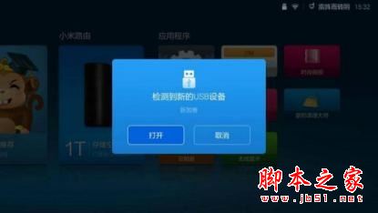 1、選擇自己要裝的軟件,如果需要看直播,就在電腦端登錄泰捷視頻官網(wǎng),下載最新的安裝包,轉(zhuǎn)移到U盤,把U盤插入小米盒子,選擇彈出窗口中的“打開”: