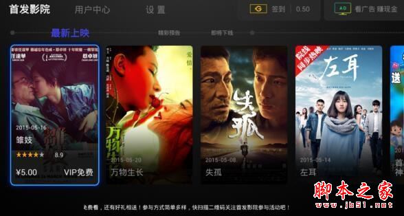 1、首發(fā)影院分類清晰,涵蓋了所有主流院線大片類型,上線時(shí)間及時(shí),方便家庭用戶第一時(shí)間觀看新電影。