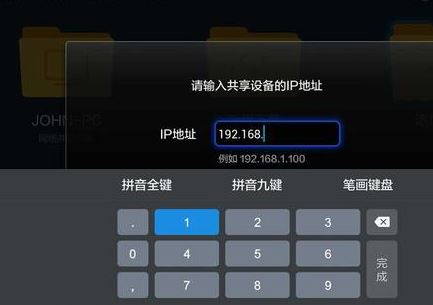 4、確保小盒子和電腦在同一局域網下,在小米小盒子系統頁面,打開“高清播放器”,選擇“設備”、“添加設備”選項,輸入剛剛獲取的IPv4地址。此時會彈出用戶名和密碼,輸入你電腦的用戶名和密碼即可。