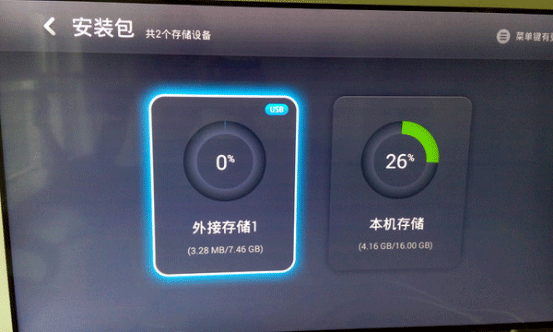 2、在后續界面點擊“安裝包”,打開“外接存儲”,找到泰捷視頻安裝文件: