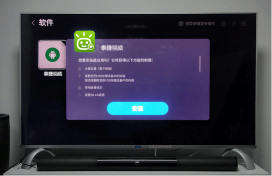 3、選中安裝文件,按遙控器確定鍵,進行安裝,安裝完成之后,就能使用樂視電視看高清電視直播了。