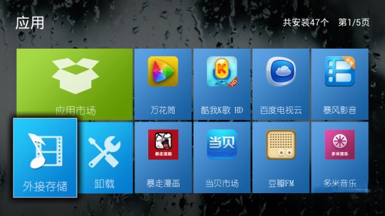 接下來(lái),點(diǎn)擊頂部菜單的“應(yīng)用”欄目,選擇“外接存儲(chǔ)”: