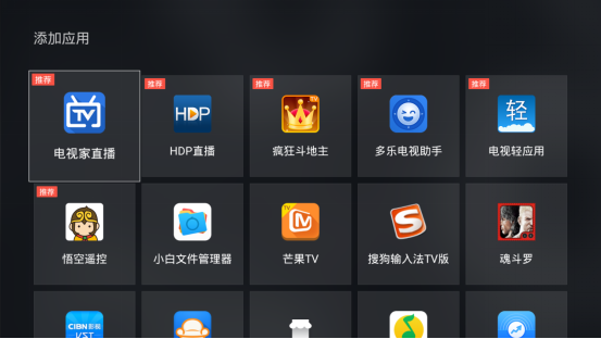 打開軟件之后,在首頁直接點擊”添加應用“,將自己喜愛的直播應用添加到泰捷視頻首頁(如下圖),就能很方便地看直播了: