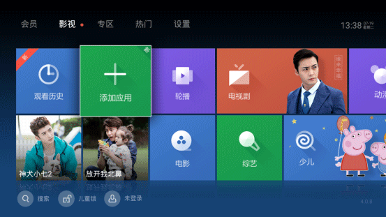 以上一步驟中已下載好的泰捷視頻為例,點擊泰捷視頻首頁“添加應用”按鈕,可看到各類應用的列表,挑選自己喜歡的直播應用,安裝下載即可,下次打開泰捷視頻,便可看到直播入口,收看各個高清電視臺的直播啦: