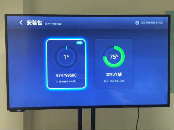 1、在泰捷官網(wǎng)下載最新的“泰捷視頻”的安裝包,拷貝到U盤(pán),然后再把U盤(pán)插進(jìn)樂(lè)視電視后面的USB插口。系統(tǒng)這時(shí)候會(huì)彈出提示框,顯示檢測(cè)到外接設(shè)備,點(diǎn)擊“查看”后,選擇“安裝包”,在安裝包界面點(diǎn)擊U盤(pán)圖標(biāo)。