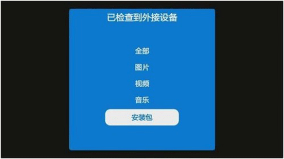 第三步:將U盤插到盒子后面的USB口中,等待系統(tǒng)會(huì)自動(dòng)檢U盤,過不一會(huì)就出現(xiàn)了選項(xiàng)菜單,選擇【應(yīng)用】,然后進(jìn)入到里面找到你的安裝文件,等待完成安裝就算是成功了。