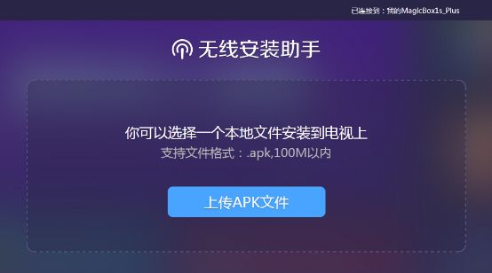 第三步,電腦瀏覽器輸入完上面的鏈接后,會出現無線安裝助手提示“上傳APK文件”的提示頁面;