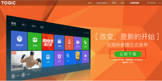 第四步:安裝完后,返回到盒子系統桌面,找到“云視聽.泰捷”這個應用的圖標,點擊打開。然后你就能看到各頻道類型的選項了。