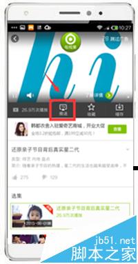3、點(diǎn)擊視頻播放界面的投屏按鍵,選擇推送到盒子。電視端就可以看到手機(jī)/平板播放的視頻。