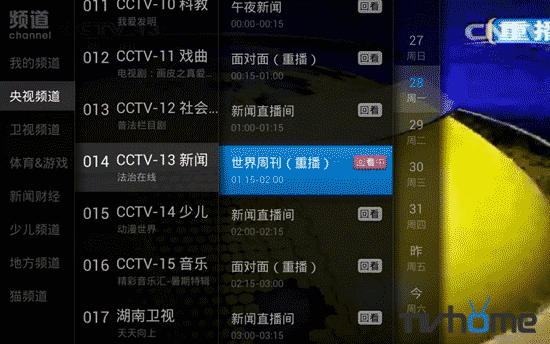 泰捷視頻整體UI風格和智能電視盒子UI很像,界面一目了然。整體為大圖標簽就是家長的老人也能操作。在操作上泰捷視頻更上十分簡單,使用遙控器就能輕松操作,進入頁面首頁點擊進入電視臺即可觀看想看的直播內容。
