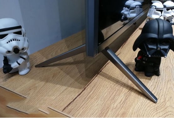 底座方面,風(fēng)行電視Q65采用的是金屬底腳設(shè)計,大開口的人字形設(shè)計,可以很好的支撐起65英寸的大屏幕。同時配色方案也與電視主體相搭配,整體感十足。