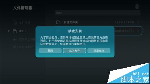 2、到”文件管理器-USB1“,然后在里面找到你剛剛下載的apk。