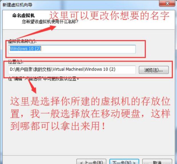 更改虛擬機的名稱和存放的位置,然后“下一步”