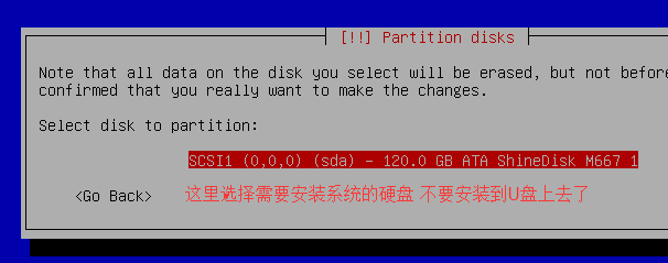 這里選擇需要安裝系統的硬盤,不要安裝到U盤上了,一定要看準磁盤大小