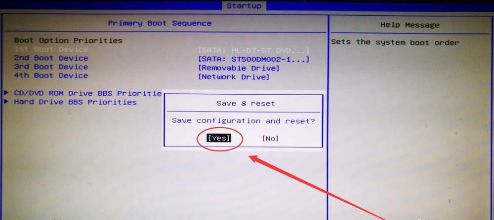 6、電腦會提示你,是否保存設置,選擇Yes選項,按下回車鍵。