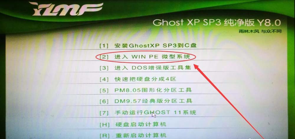1)在安裝界面中,選擇2進入PE系統(tǒng)。
