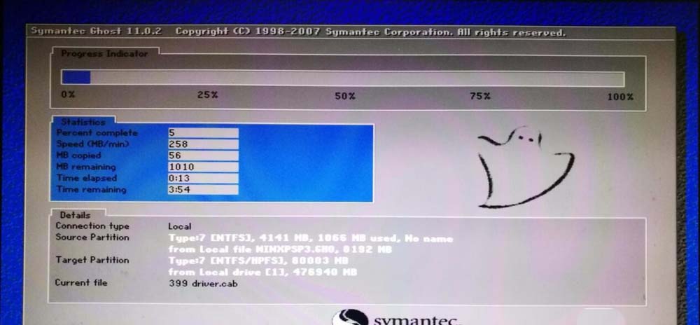 2)電腦就自動的把操作系統(tǒng)安裝到C盤了,本人只需靜靜等待即可。