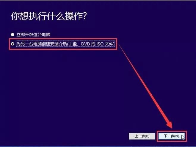 第五步:然后等待一會兒,選擇“為另一臺電腦創建安裝介質”,點“下一步”。