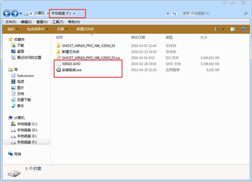 1、首先下載Ghost Win10系統(tǒng)鏡像“GHOST_WIN10_PRO_X86_V2016_03.iso”到本地硬盤上(這里下載在F盤上);