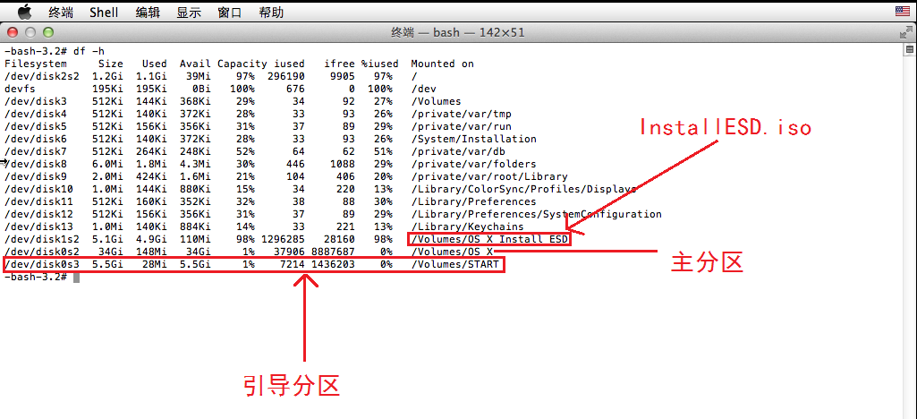 11.等恢復完畢,START分區的名字就改變了。關閉“磁盤工具”,打開“終端”。