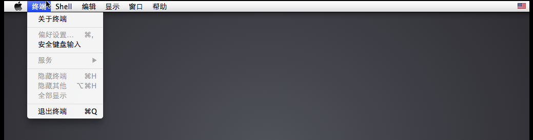 8.點擊菜單欄上的“終端”,選擇“退出終端”,切換到“OS X 實用工具”頁面。