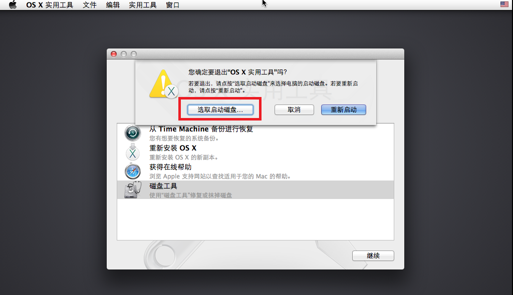 16.關閉“OS X 實用工具”, 系統會提示你“您確定要退出‘OS X 實用工具’嗎?”。