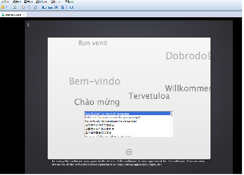 等“菊花”轉完,語言設置頁面便跳出來了,選擇一個你認識的語言(教程選擇的是中文),點擊表示下一步的右箭頭,進入OS X 實用工具頁面。