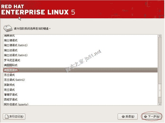 點擊“Next”,進入鍵盤選擇界面,選擇默認“美國英語式”即可,如圖5所示。