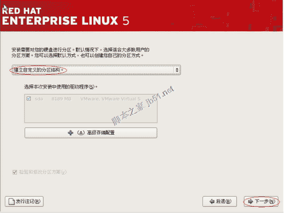 在下拉列表框中選擇“建立自定義的分區結構”,點擊“下一步”,進入磁盤分區界面,如圖10所示。