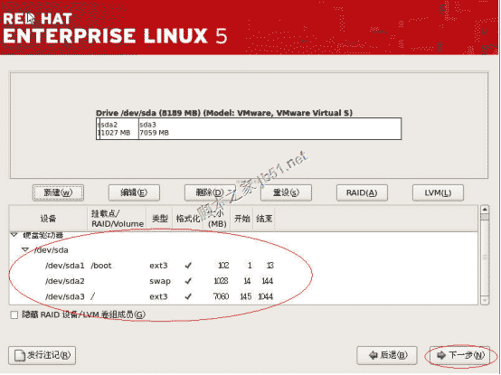 最后新建一個分區,掛載點為“/”,文件系統類型為“ext3”,大小為“使用全部可用空間”。點擊“確定”,如圖13所示。