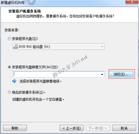 選擇安裝程序光盤映像文件(iso)(M),然后點擊【瀏覽】: