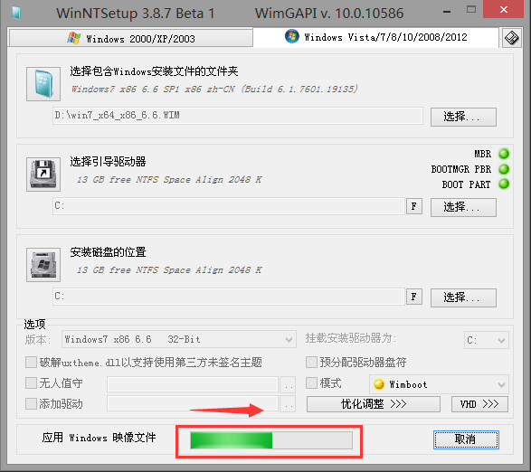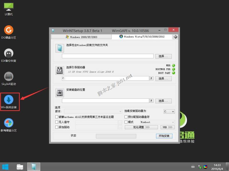 此外可使用吻妻提供的硬盤安裝器8.1.1(注:低版本不支持WIM格式安裝)來安裝,如下圖