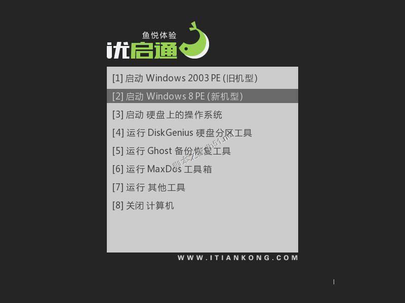 1、首先制作一個(gè)U盤PE啟動(dòng)盤,本教程以IT天空出品的“優(yōu)啟通”為示例(PE及工具不唯一,大家可根據(jù)自己需要選擇純凈無捆綁的即可)
