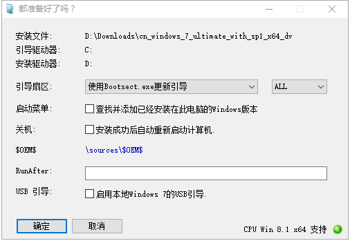 選擇“使用Bootsect.exe更新引導”,支持BIOS和UEFI;如果想要與電腦上現在已有的系統組建成雙系統或多系統,則需要勾選“查找并添加已經安裝在此電腦的Windows版本”;建議勾選“安裝成功后自動重新啟動計算機”。