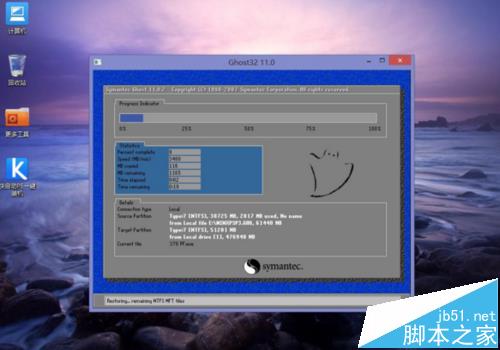 4、工具便會根據設置釋放系統鏡像到指定磁盤分區中,在此期間無須進行其他操作,等到安裝完成并重啟即可,如下圖所示: